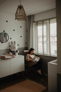 In jullie eigen huis is alles vertrouwd. Jullie baby ruikt zijn eigen dekentje, jullie weten waar alles ligt en er is geen tijdsdruk. Het ouderlijk bed is vaak een van mijn favoriete plekken om te fotograferen. Het licht op de bovenverdieping is vaak zacht en het grote bed biedt een veilige, rustige basis voor intieme portretten. We nemen alle tijd. Meestal ben ik een ochtend bij jullie, zodat er ruimte is voor zowel portretten (lifestyle foto's) als spontane momenten (documentaire fotografie). We voelen tijdens de shoot wat past bij jullie dag.